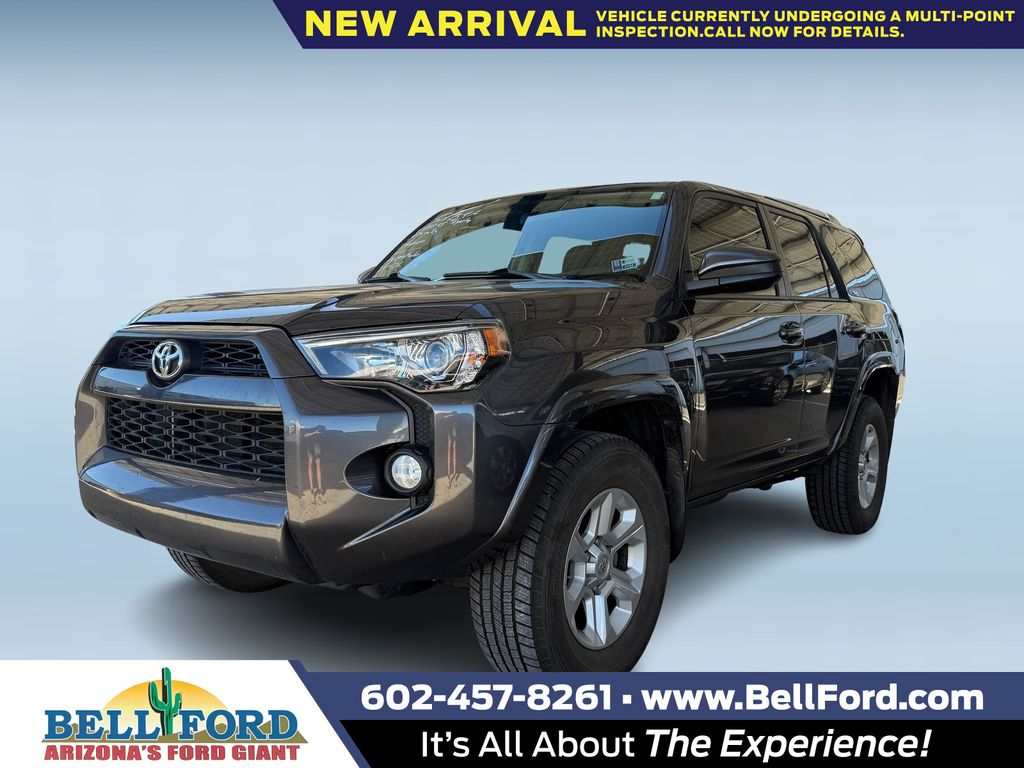 ** HERE AT BELL FORD ITS ALL ABOUT THE EXPERIENCE** Please visit us online at www.bellford.com This Toyota 4Runner is equipped with the following options: 4WD, Black Graphite w/Fabric Seat Trim, 17″ x 7.0″ 6-Spoke Alloy Wheels, 3.727 Axle Ratio, 4-Wheel Disc Brakes, 8 Speakers, ABS brakes, Air Conditioning, Alloy wheels, AM/FM radio: SiriusXM, Anti-whiplash front head restraints, Brake assist, Bumpers: body-color, CD player, Driver door bin, Driver vanity mirror, Dual front impact airbags, Dual front side impact airbags, Electronic Stability Control, Emergency communication system: Safety Connect, Exterior Parking Camera Rear, Front anti-roll bar, Front Bucket Seats, Front Center Armrest, Front fog lights, Front reading lights, Front wheel independent suspension, Heated door mirrors, Illuminated entry, Knee airbag, Leather Shift Knob, Leather steering wheel, Low Fabric Seat Trim, Low tire pressure warning, Occupant sensing airbag, Outside temperature display, Overhead airbag, Overhead console, Panic alarm, Passenger door bin, Passenger vanity mirror, Power door mirrors, Power driver seat, Power steering, Power windows, Radio: Entune Audio Plus, Rear anti-roll bar, Rear seat center armrest, Rear window defroster, Rear window wiper, Remote keyless entry, Roof rack: rails only, Security system, Speed control, Speed-sensing steering, Split folding rear seat, Spoiler, Steering wheel mounted audio controls, Tachometer, Telescoping steering wheel, Tilt steering wheel, Traction control, Trip computer, and Variably intermittent wiperS.